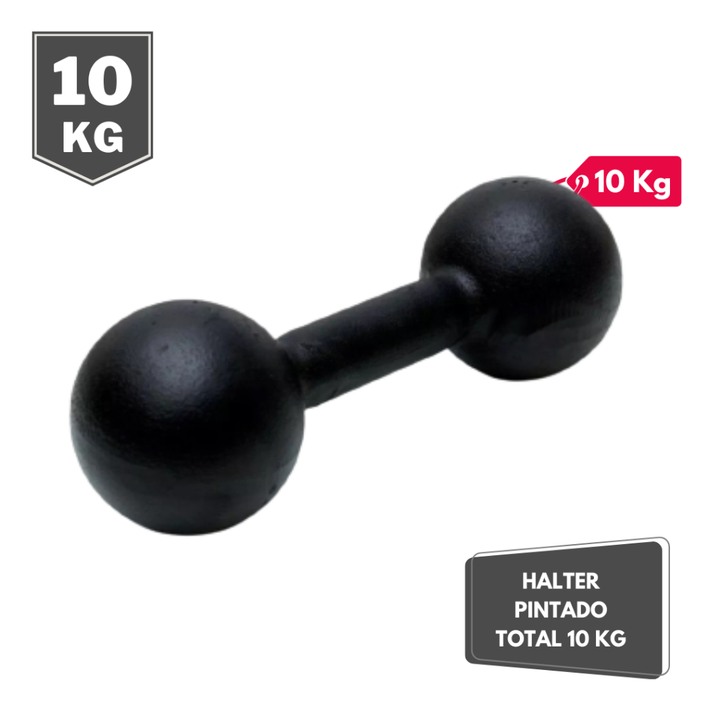 Halter Bola Pintado 10kg Academia Musculação Ferro Fundido Preto Fosco