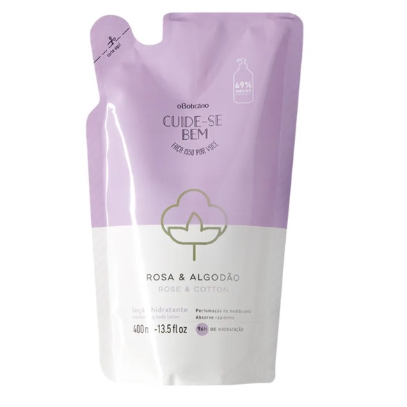 O Boticário Hidratante Rosa e Algodão Refil Loção Corporal Cuide-se Bem 400ml