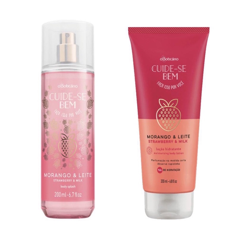 Combo Morango & Leite Cuide-se Bem Body Splash 200 mL + Loção 200 mL, oBoticário