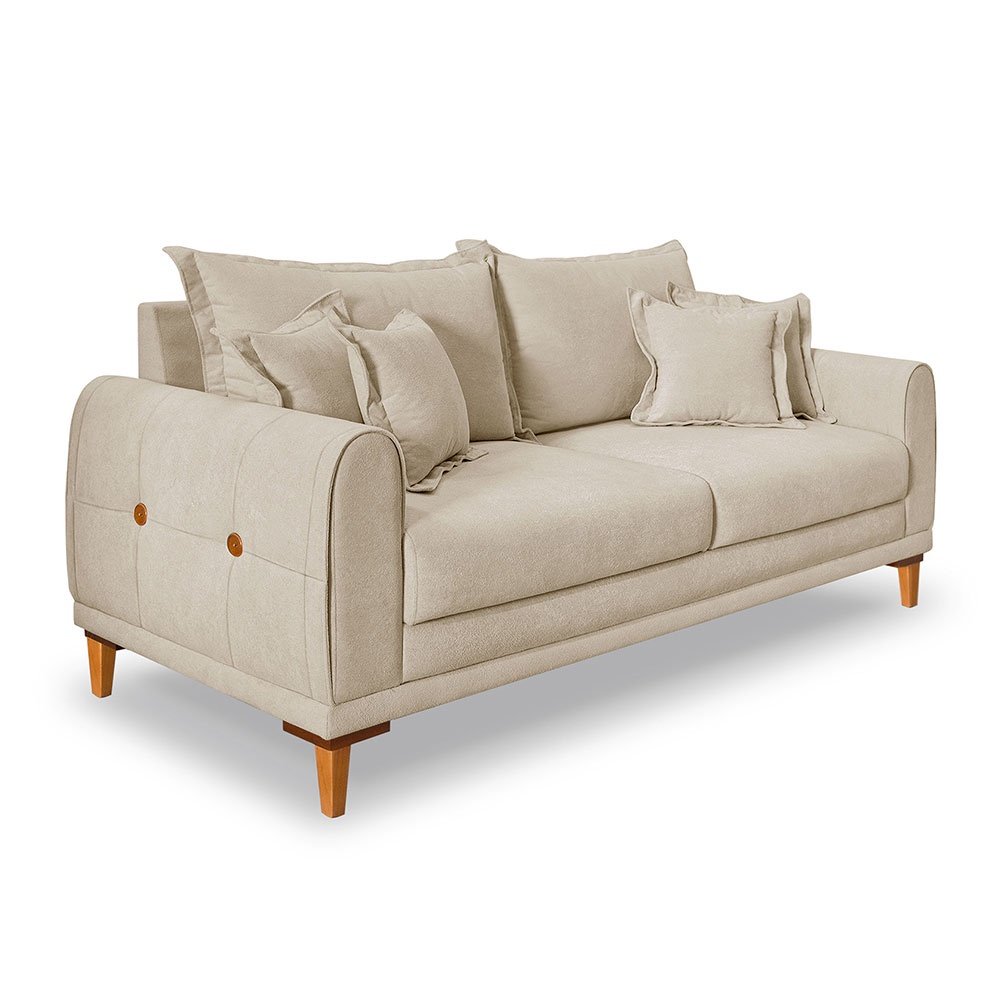 Sofá Living 2 Lugares 1,60m Livia Veludo Bege Pés de Madeira - Pallazio
