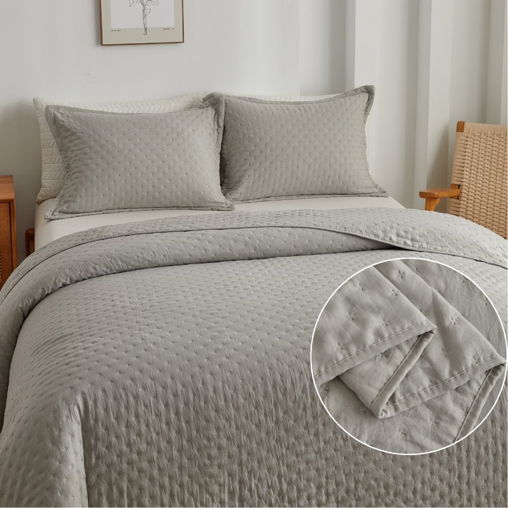 Kit Cobre Leito Colcha Casal 3pc Dupla Face Ponto Cruz 300 fios 100% Poliester