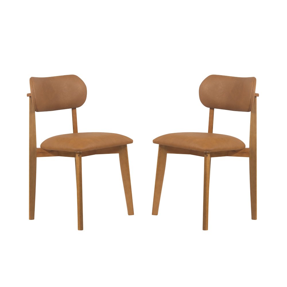 Conjunto 2 Cadeiras de Jantar Estofada Lunna Amêndoa e Couríssimo Caramelo - WP 59477