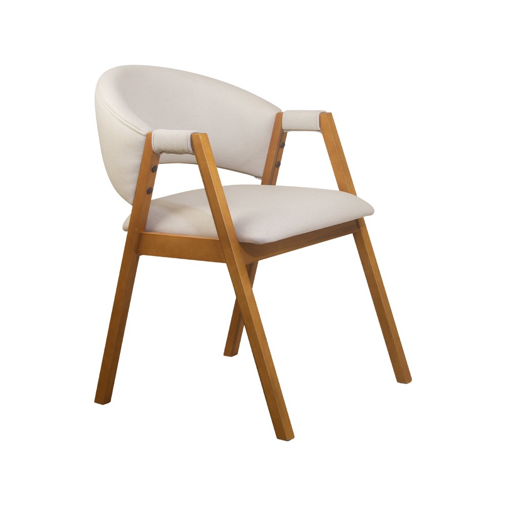 Cadeira de Jantar Estofada Lunna Amêndoa e Linho Off White - WP 59452