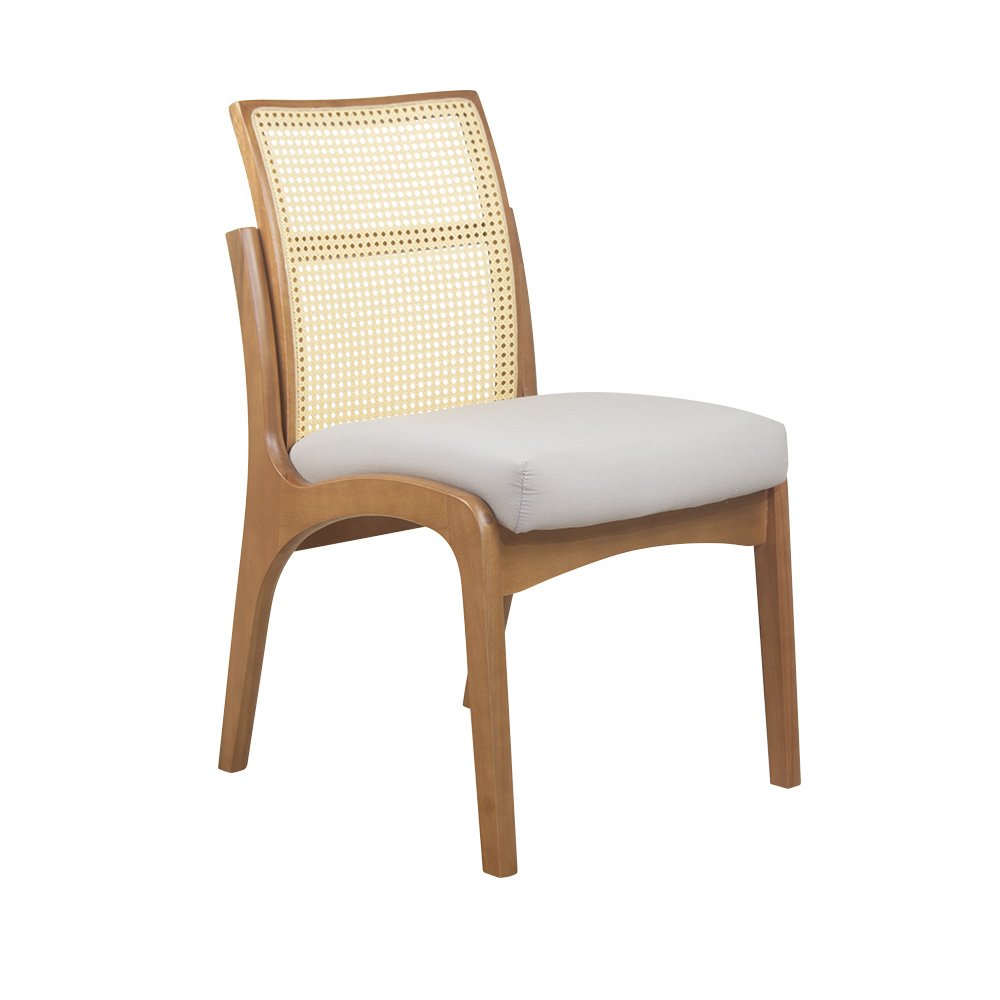 Cadeira de Jantar Classic com Rattan Amêndoa e Linho Off White - WP 59287