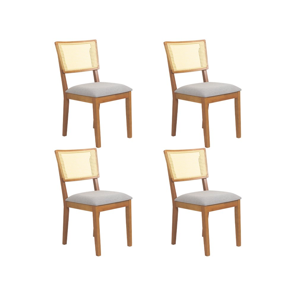 Conjunto 4 Cadeiras de Jantar Ika Amêndoa e Linho Cinza com Tela - WP 59699
