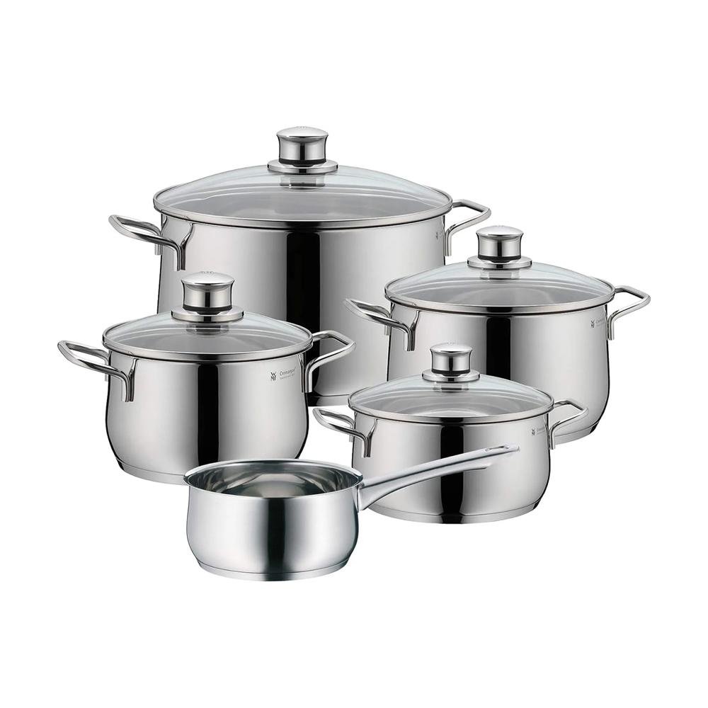 Jogo de panelas em aço inox WMF Diadem para Indução 5 Peças prata