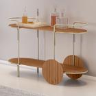 Carrinho Bar Órbita em Madeira Maciça Imbuia Mel Estrutura em Metal Champagne