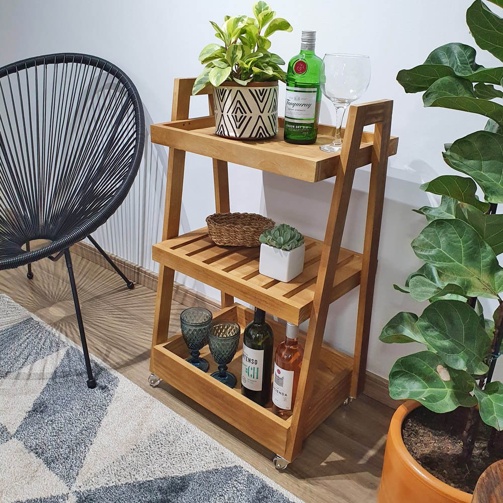 Carrinho Bar Stella 85A X 50L X 35P em Madeira de Pinus - MEL