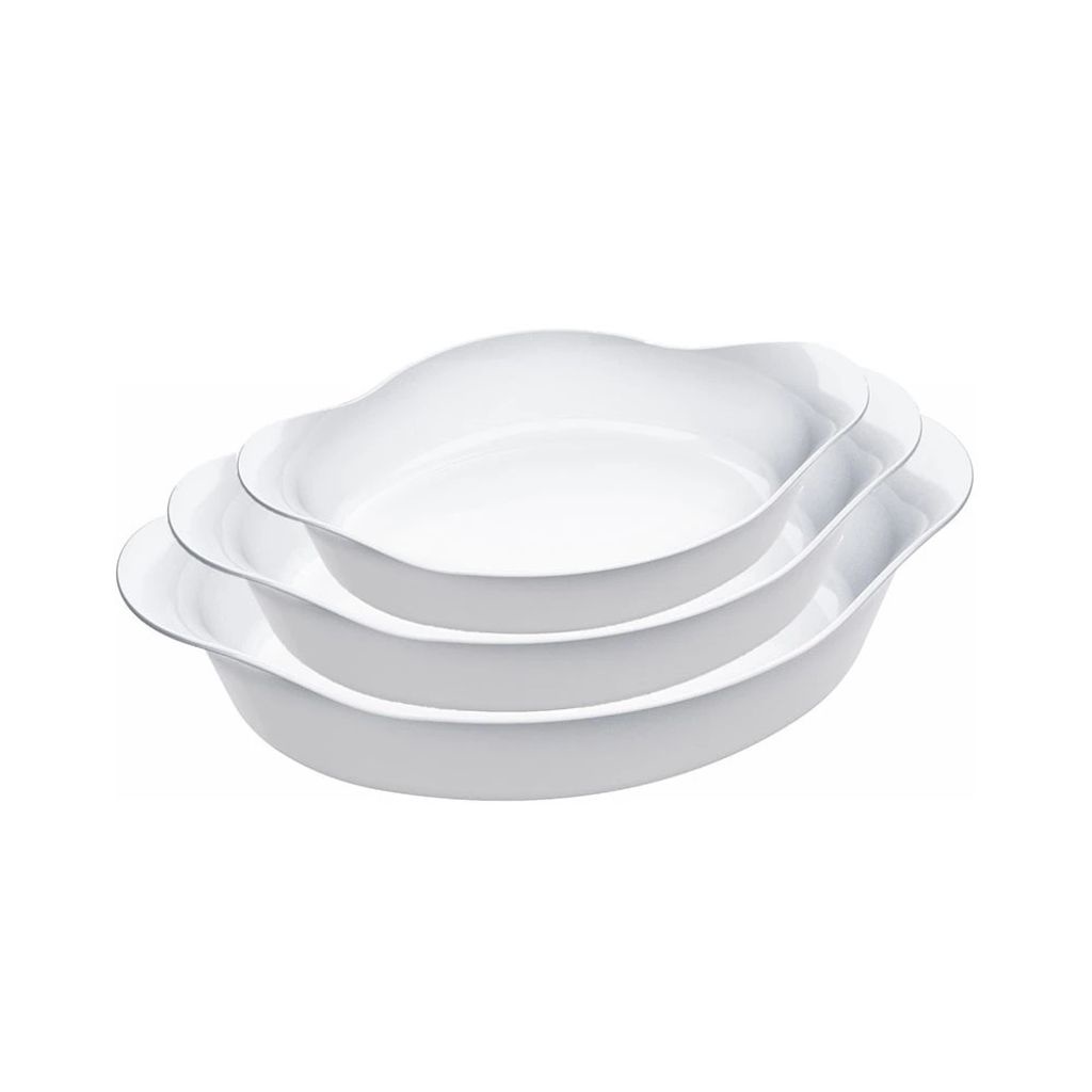 Conjunto de Assadeiras Ovais Marinex Opaline em Vidro Temperado – 3 Peças