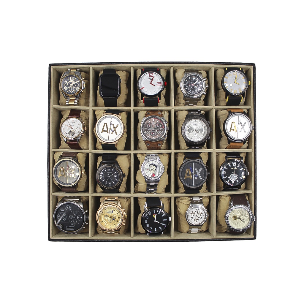 Bandeja Organizadora para 20 Relógios Preto com Interno Aveludado Bege