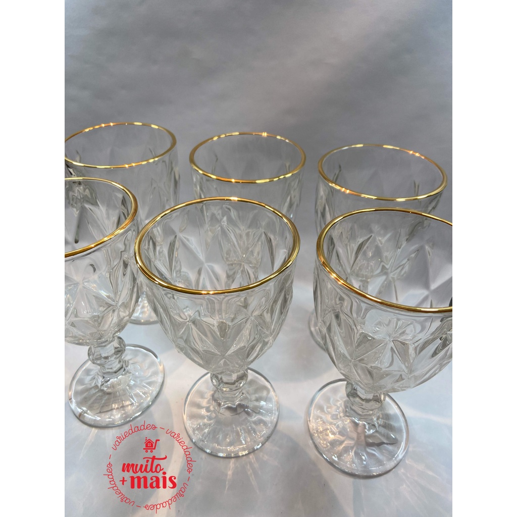 Conjunto de 6 Taças para Água e Vinho Transparente com Borda Dourada 275ml Premium TCVN010TR - Hauskraft