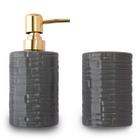 Conjunto Porta Sabonete Líquido e Pote 2 Peças com Tampa de Cerâmica - Lyor - Kit para Banheiro
