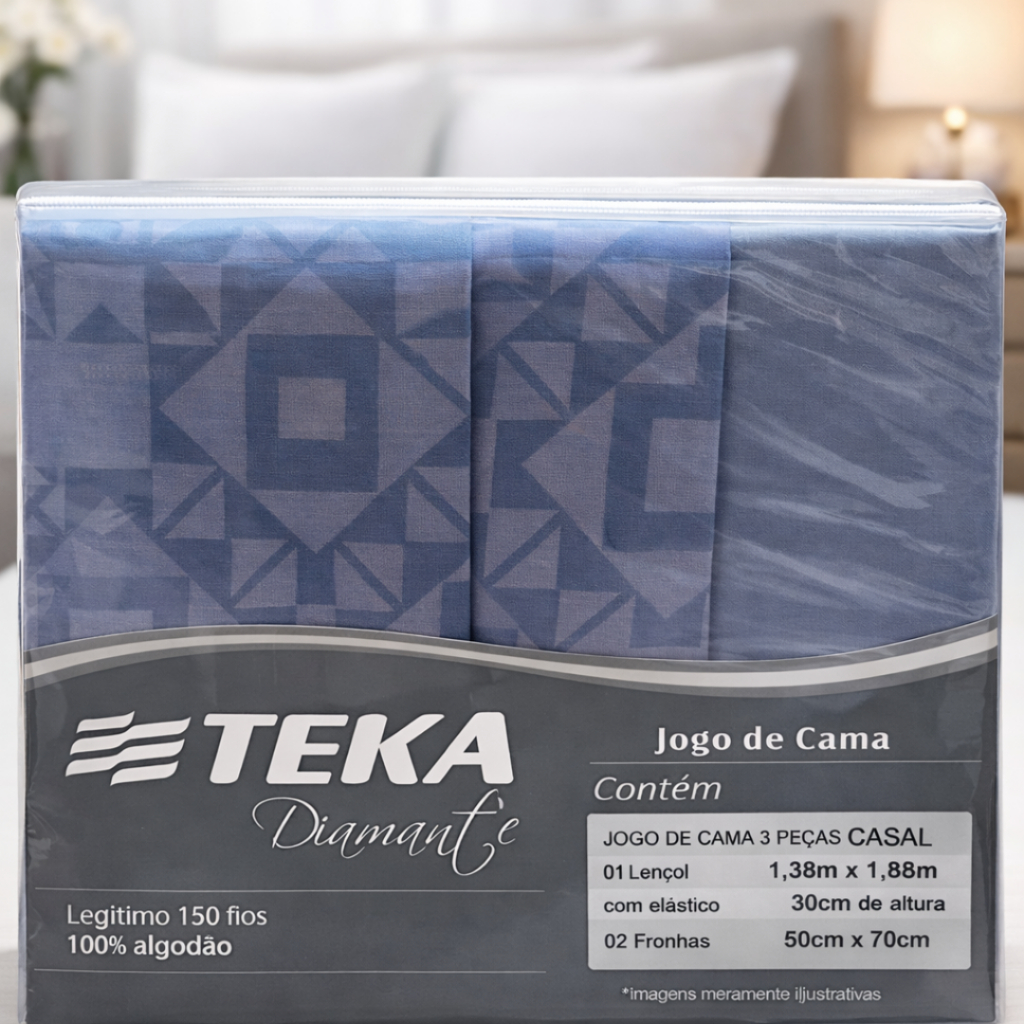 JOGO DE LENÇOL TEKA 100% ALGODÃO PREMIUM DIAMANTE 150 FIOS 3 PEÇAS SOLTEIRO, CASAL, QUEEN