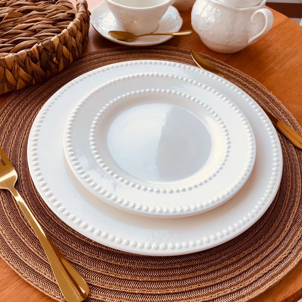 Prato Raso de Porcelana New Bone Pearl Branco 27cm - Mesa posta