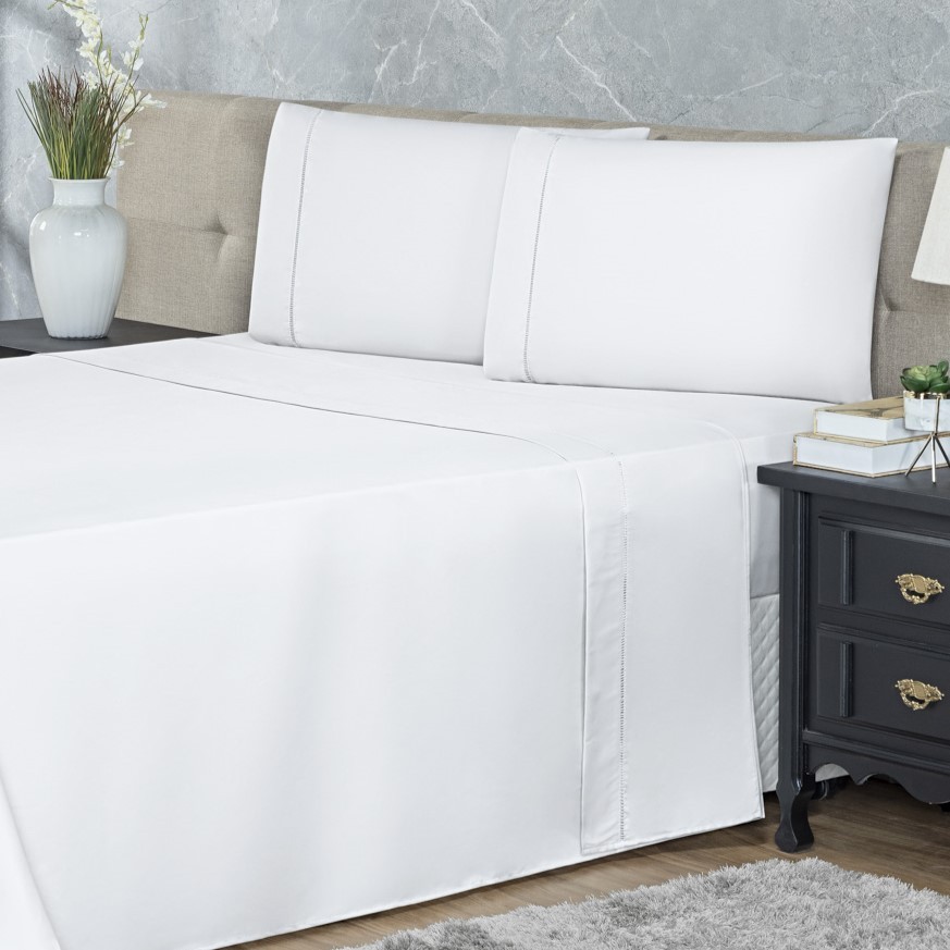 Jogo de Cama Lençol Queen Realce Percal 400 Fios 4 Peças - Cinza - 100% Poliéster