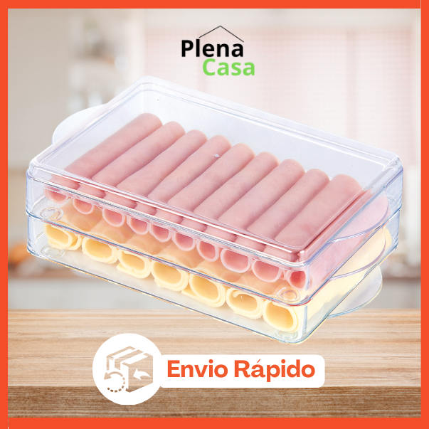 Porta Frios Duplo Inox Empilhável Com Pegador Pinça Kit Casa Presunto Queijo Cozinha