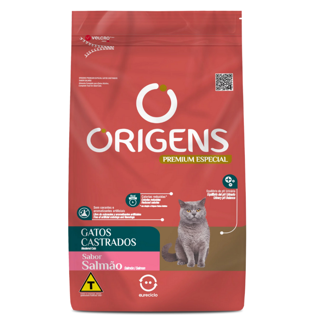 Ração Origens Premium Especial Gatos Castrados Sabor Salmão 3 kg