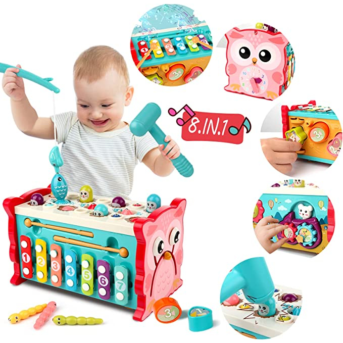 LOVE BABY-8 em 1 Montessori Martelando Brinquedos de Batimento para 1 2 Anos de Idade Jogo de Pesca Educacional Xilofone Forma Classificador Desenvolvimento Aprendizagem Brinquedo Motor Habilidade Criança Atividade Idade 2-4 Menino Menina Páscoa Presente