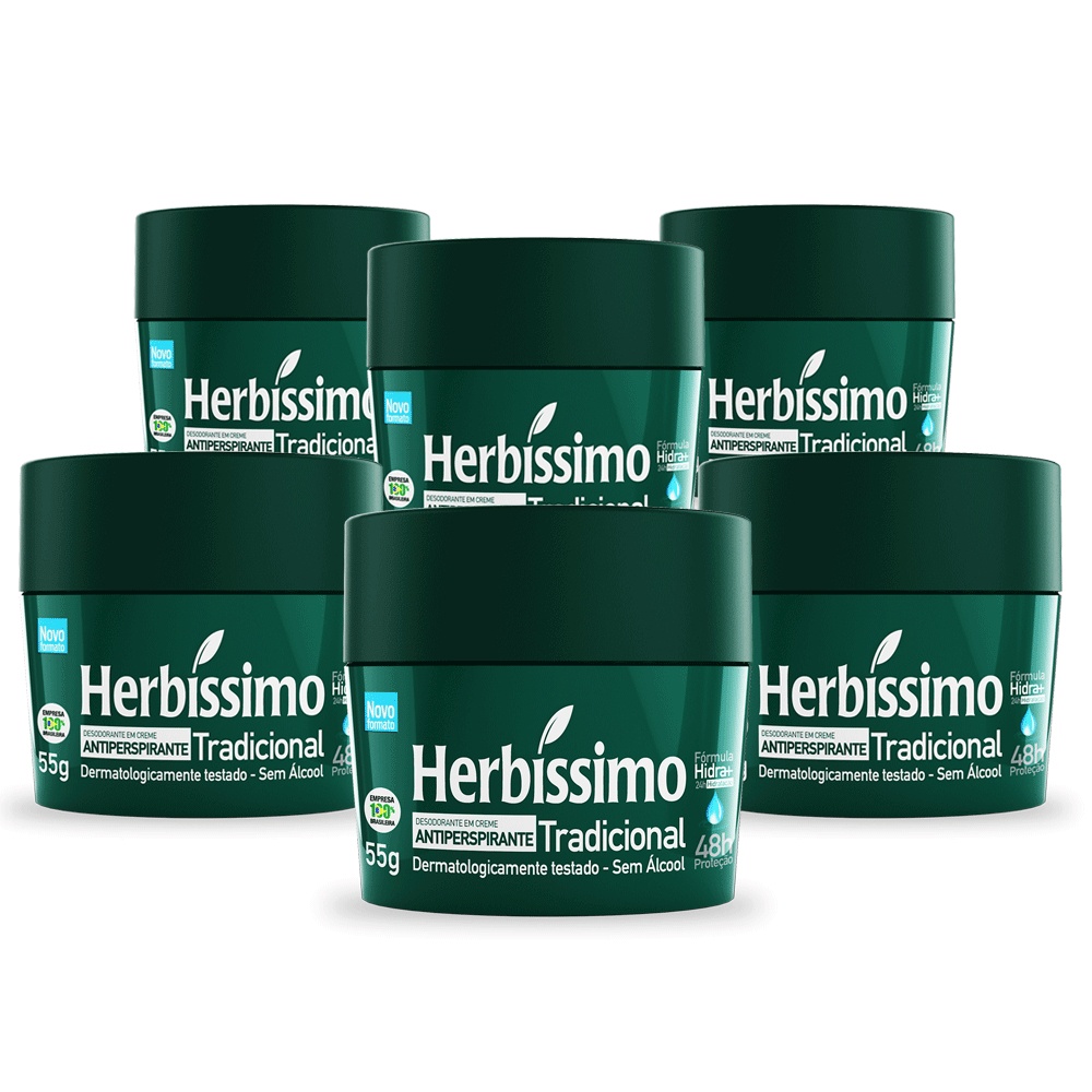 Kit Desodorante Creme Antitranspirante Tradicional Herbissimo 55G com 6 unidades