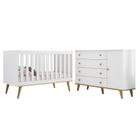 Quarto de Bebê Retrô Cômoda com Porta Cris Berço 3 em 1 Ludmila Branco com Bétula Carolina Baby