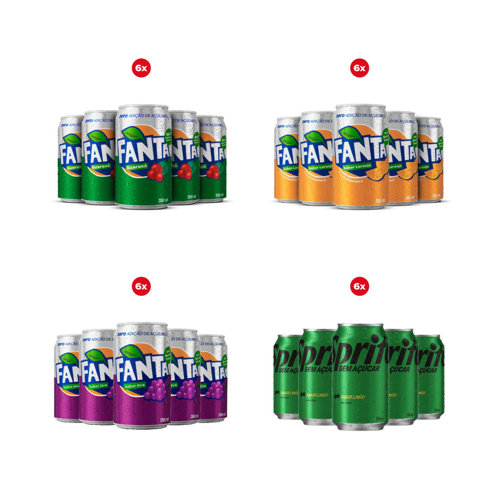 Kit 6 Unidades Pack Refrigerante ZERO Lata 350ml - Fanta laranja uva guaraná sprite
