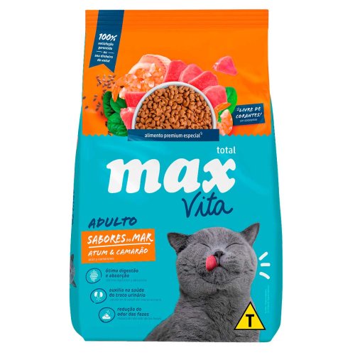 Ração para Gatos Adultos Max Vita Sabores Atum e Camarão 3Kg