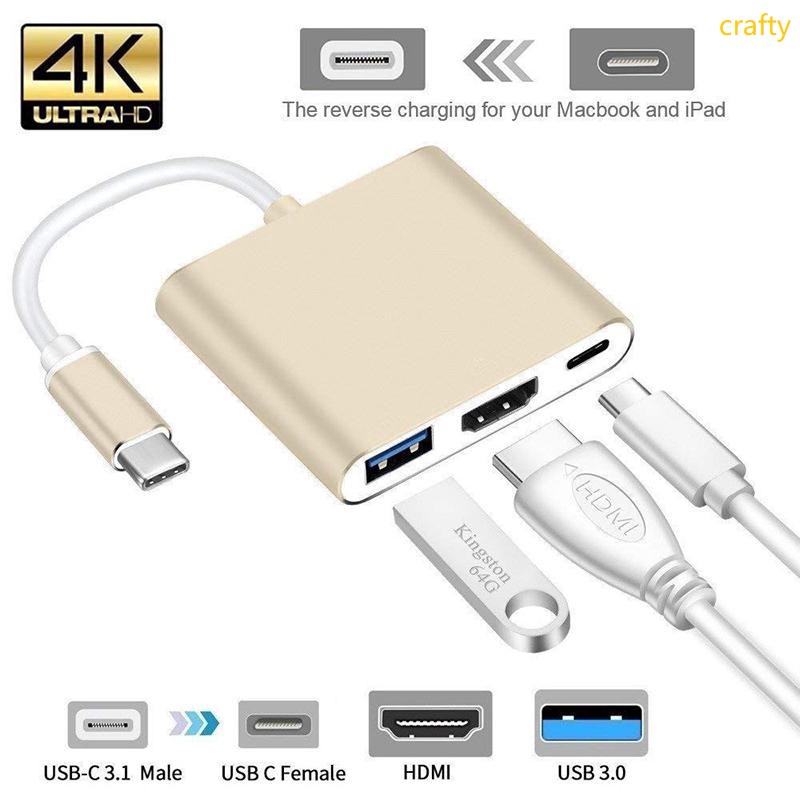 [crafty]3 em 1 Hub Tipo C para HDMI USB 3,0 Conversor 4K / Adaptador Shell Alumínio
