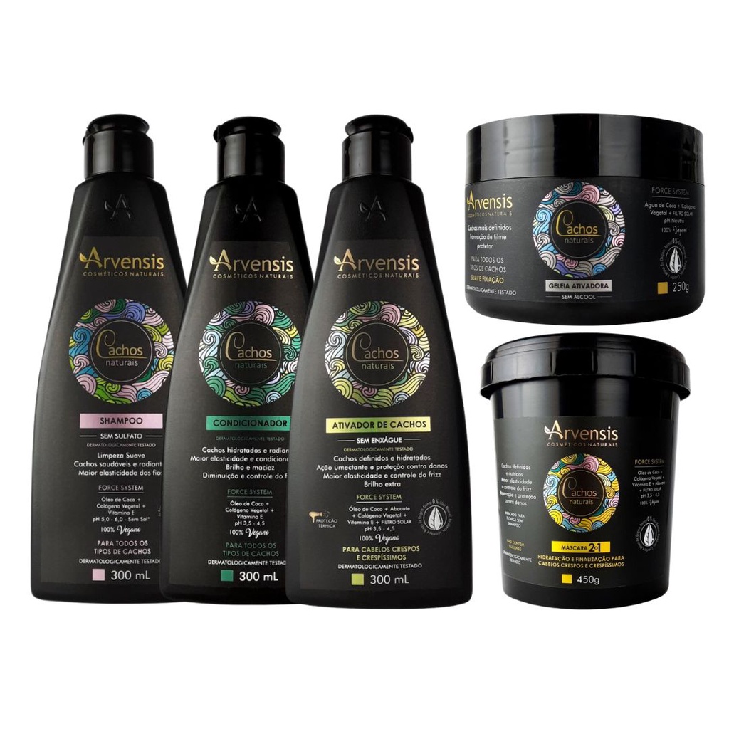 Arvensis Kit Shampoo 300ml + Condicionador 300ml Cachos Naturais (nutrição, reparação dos fios danificados e aumento da elasticidade)
