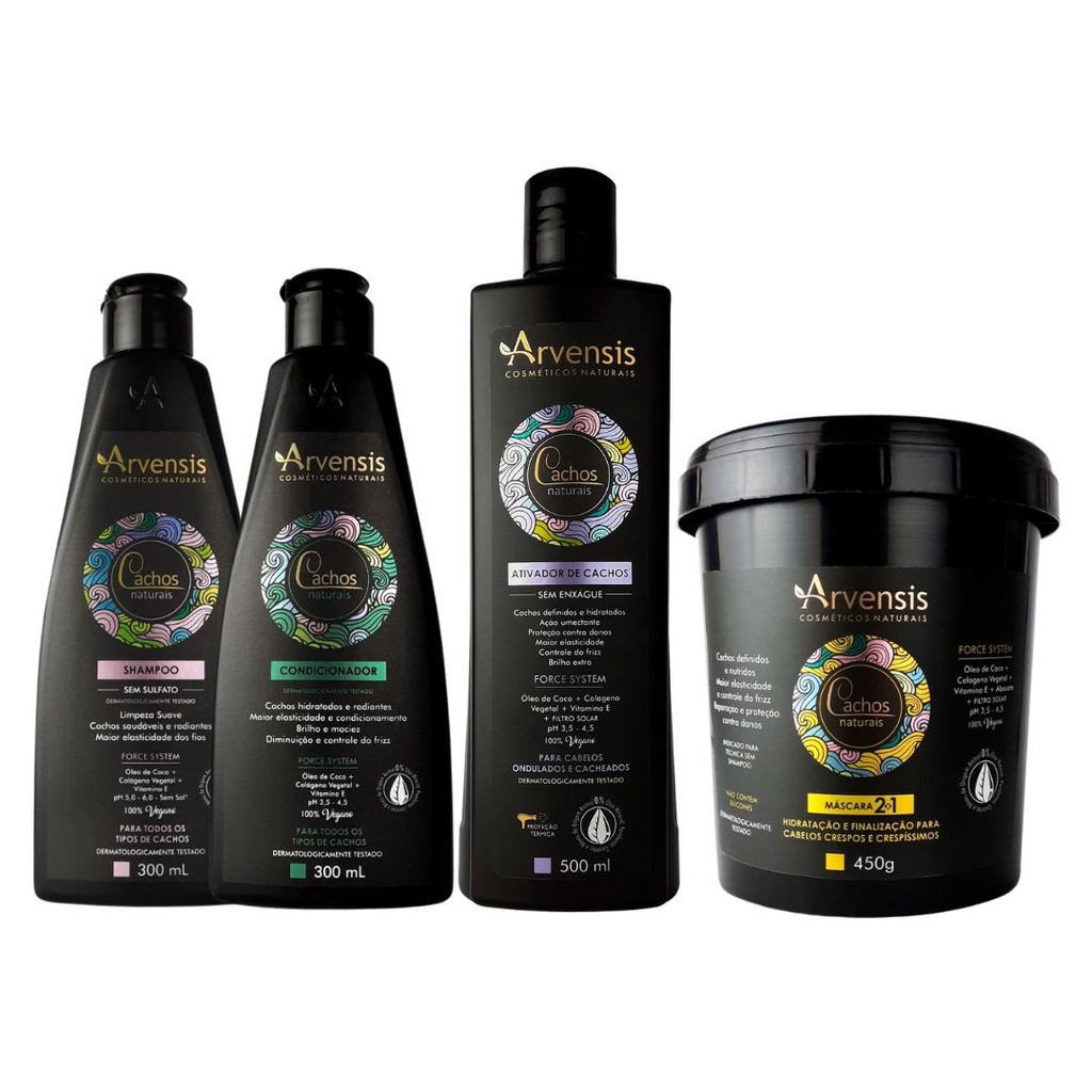 Kit Arvensis Cachos Naturais Sh.+cond +ativ 300ml +masc 250g