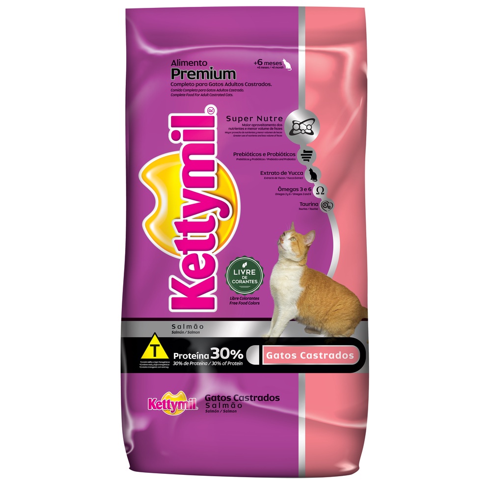 Ração Premium Kettymil para Gatos Castrados Sabor Salmão - 10kg