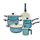 Conjunto De Panelas 7 Peças Cerâmica Genebra Casa ambiente Azul com Tampa De Vidro e Alças Ergonômicas Siliconadas