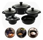 Jogos De Panelas Conjunto 5 Pcs Cerâmica Tampa De Vidro