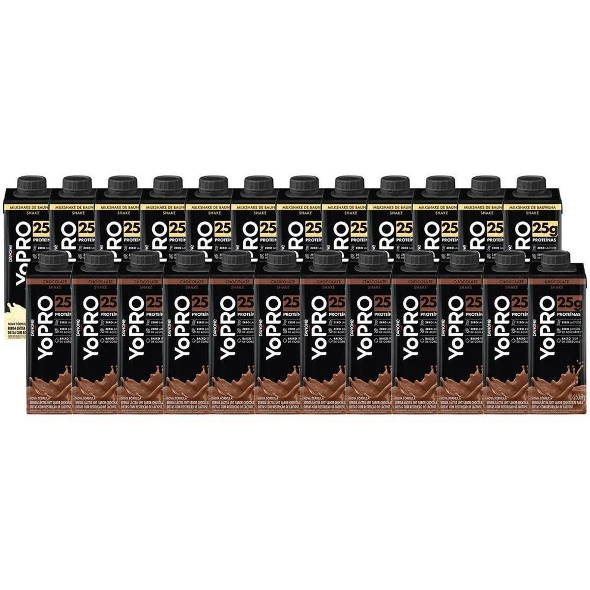 Kit Bebida Láctea UHT YoPRO Milkshake Baunilha 250ml 12 Unidades + Chocolate 250ml 12 Unidades