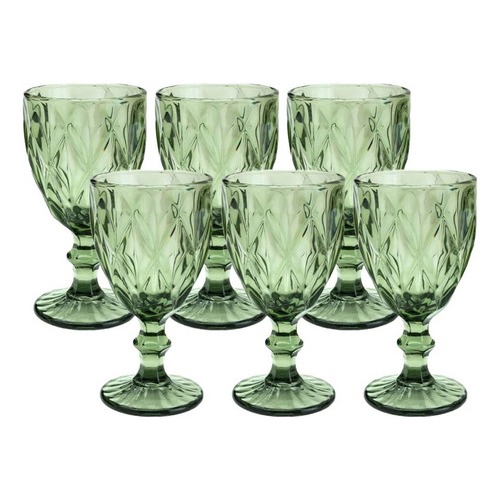 Kit Com 6 Taças água vidro Diamante diamound Reforçado 325ml - Taça de Vinho Tinto champing