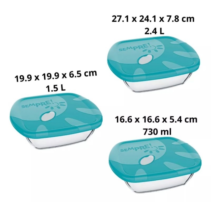Conjunto de Assadeiras Refratárias Quadradas Sempre em Vidro Sodacal – 3 Peças