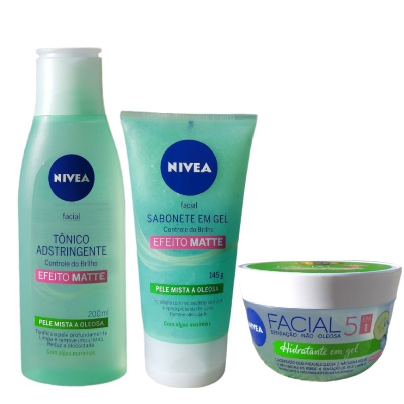 Kit Nivea Skin Care 3 Produtos - Gel de Limpeza Efeito Matte, Tônico Adstringente & Gel Nivea Facial