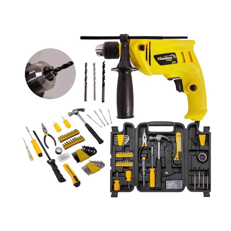 Furadeira De Impacto 500w 1/2 13mm Com Kit 7 Brocas Cor Amarelo 110v 05619 - Titanium