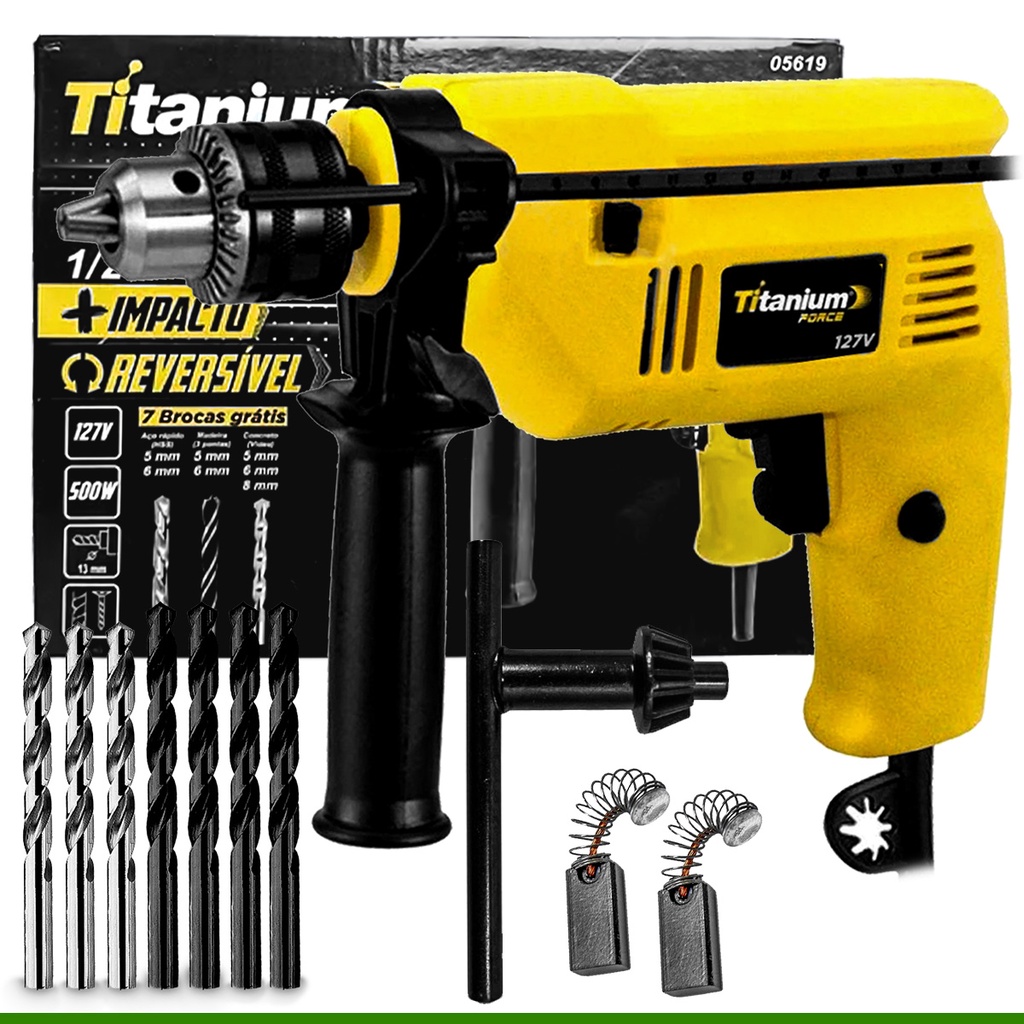 Furadeira Parafusadeira Impacto 1/2'' 220v 500w Titanium C/ Brocas