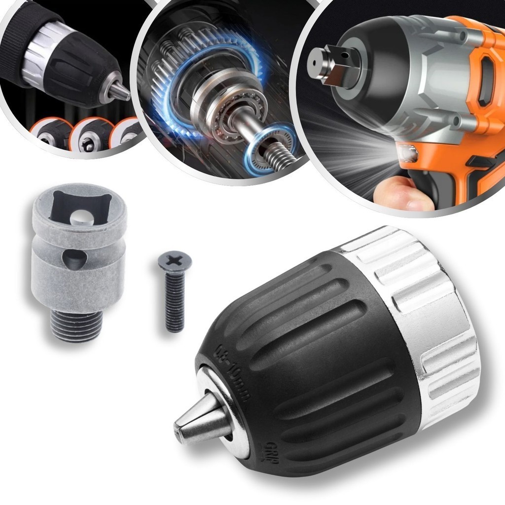 Kit Mandril Aperto Rápido 1/2 x 1-10mm (3/8) + Haste Adaptador de Parafusadeira de Impacto Universal Reforçado Castanhas Taladro Parafusadeira Furadeira Broca Makita Bosh Dewalt Stanley Hammer Wap Skill Titanium Dexter Deko Black & Decker Mondial Philco