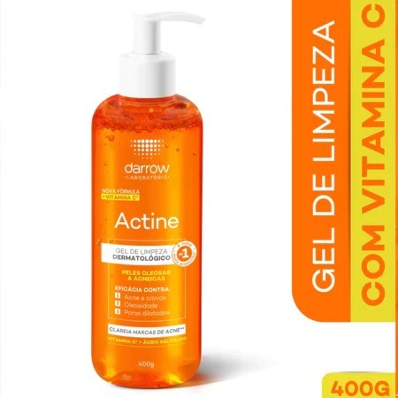 Darrow Actine Gel de Limpeza 400g Clareia Marcas de Acne Peles Oleosas e Acneicas (Laranja)