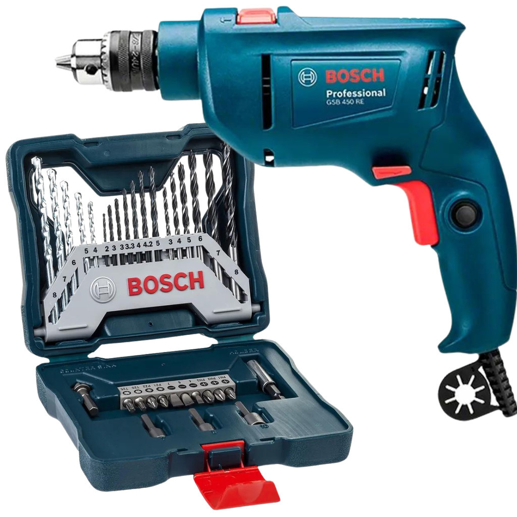 Kit Furadeira De Impacto Bosch GSB 450 RE STD 450W 127V + Kit de Pontas e Brocas Bosch X-Line 33 PÇS