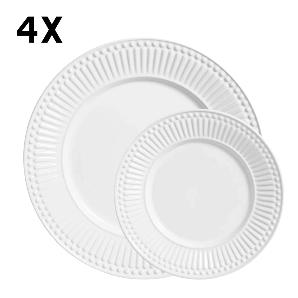 4 Prato Raso E 4 Sobremesa Conjunto Branco Roma Porto Brasil 8 Peças