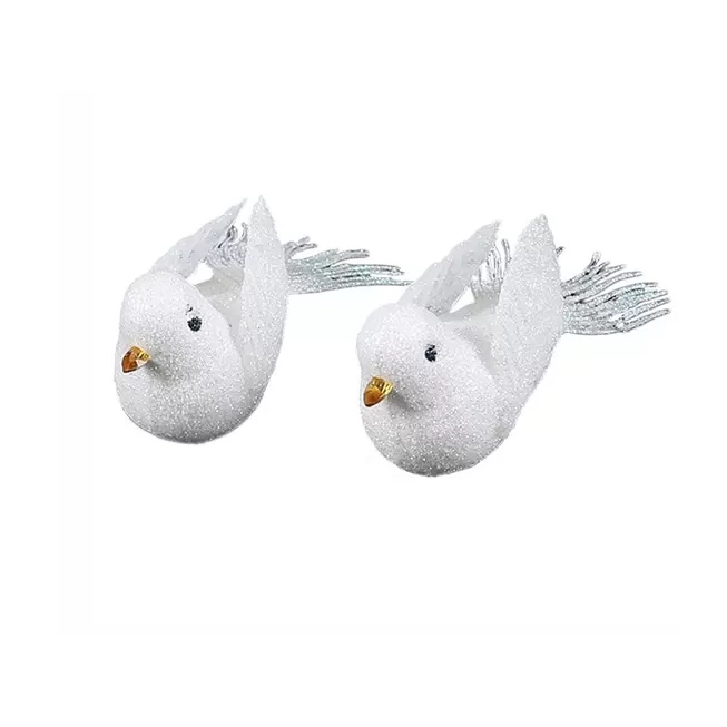 Kit 2 Passarinho Com Glitter Para Árvore De Natal - Branco