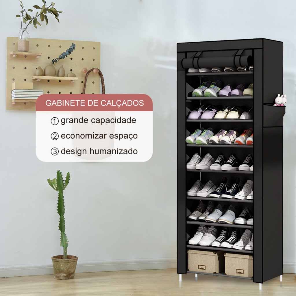 Sapateira com 9 Prateleiras para Organizar Calçados e Objetos Cor: Preta