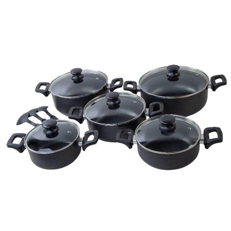 Jogo de Panelas 13 Peças Com panela de Pressão Fechamento Externo de Peças Antiaderente Teflon Grafite Black