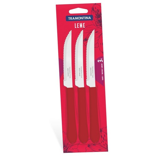 Conjunto de Facas para Churrasco Tramontina Leme com Lâminas em Aço Inox e Cabos de Polipropileno Vermelho 3 Peças 23180374