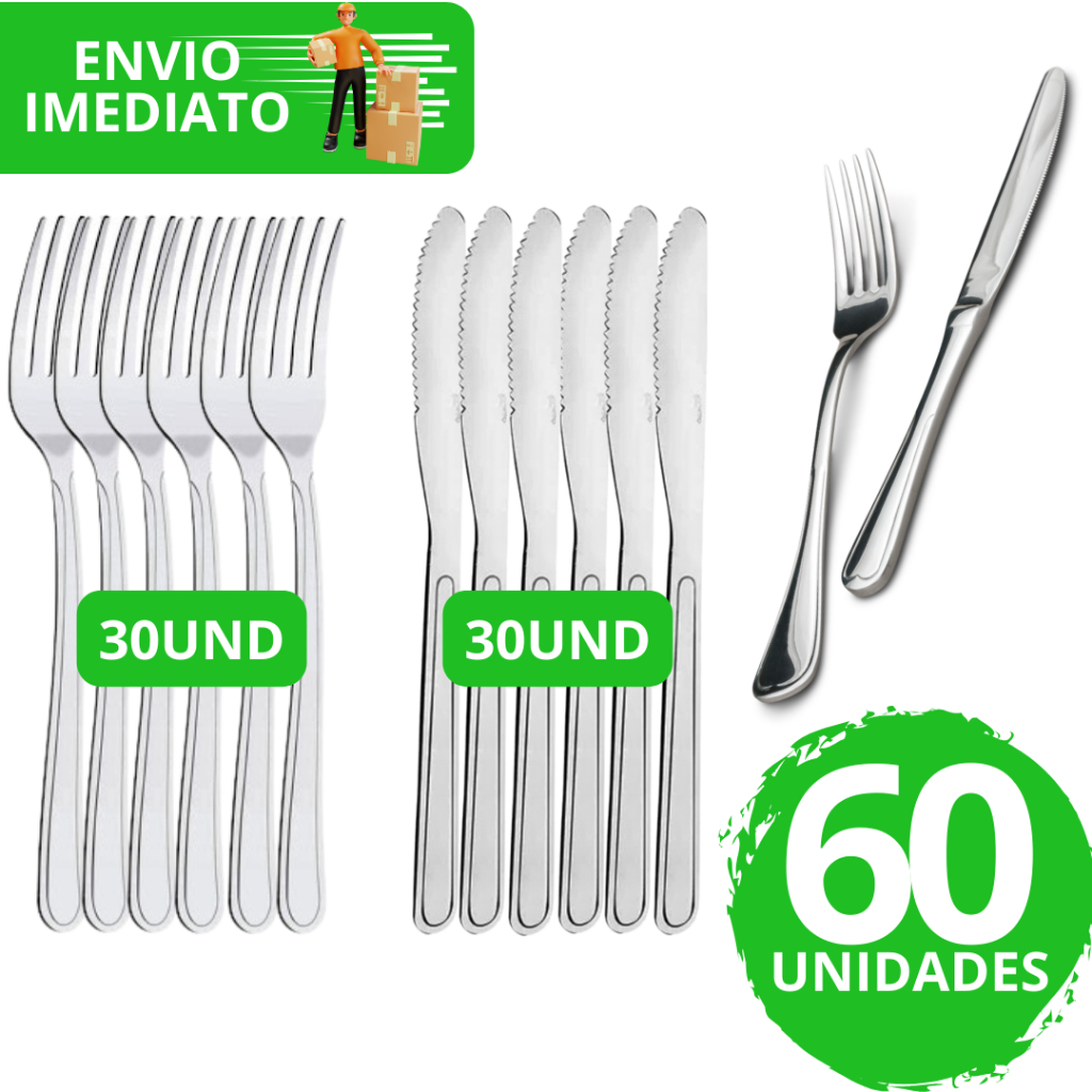 OFERTA Conjunto 60 Talheres Garfos e Facas 100% Em Aço Inox Premium Alta Qualidade Para Restaurantes