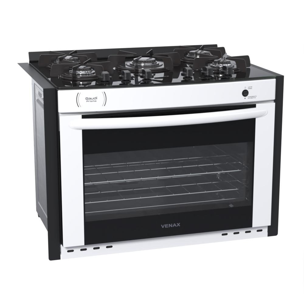 Fogao a Gas de Embutir 5 Bocas Venax Gaudi Prisma Vitreo Branco