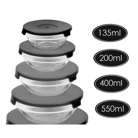 Conjunto de Potes Redondos 3 Peças Ruvolo Style em Vidro com Tampa Plástica Preta