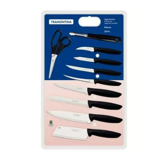 Conjunto de Facas Tramontina Plenus em Aço Inox e Polipropileno 10 Peças